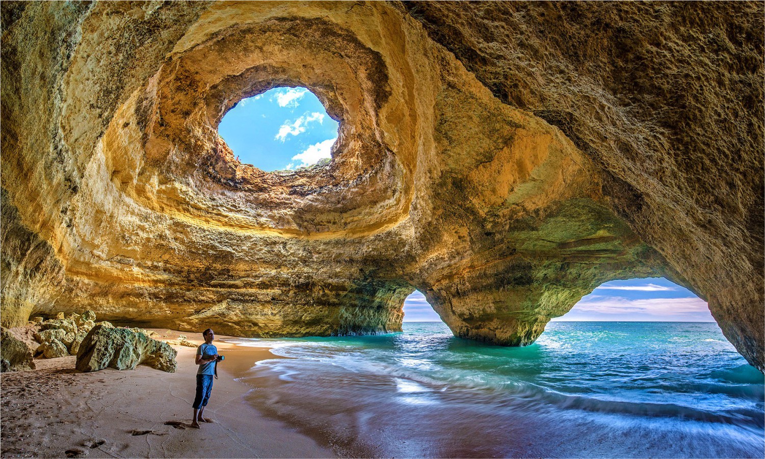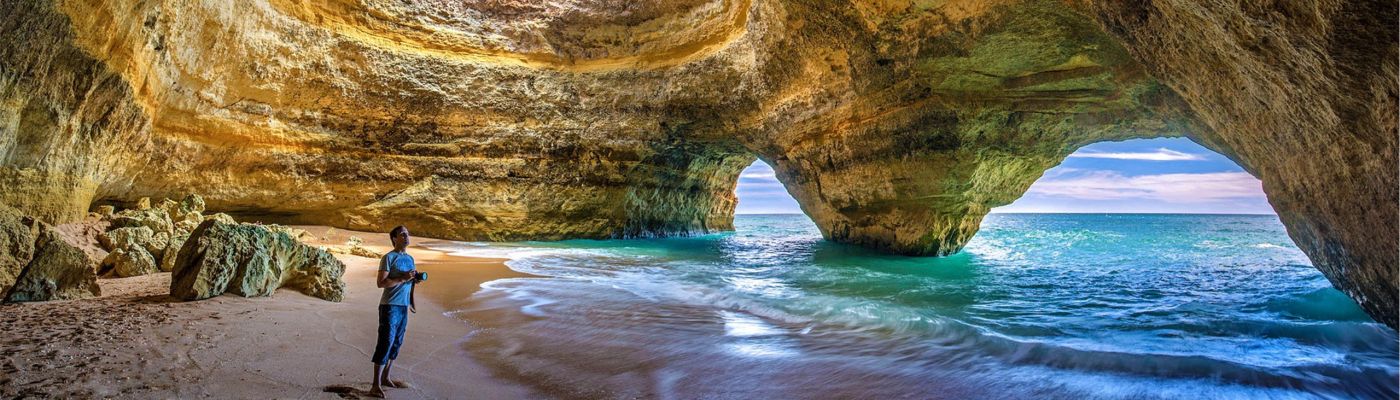 Zaujímavosť: Praia da Marinha (anglicky: Navy Beach alebo Marinha Beach) je jedna z najtypickejších portugalských pláží so stredomorským podnebím, ktorá sa nachádza na pobreží Atlantiku v Caramujeira v obci Lagoa v Algarve a sprievodca Michelin ju považuje za jedna z 10 najkrajších pláží v Európe a ako jednu zo 100 najkrajších pláží na svete. V roku 1998 bola portugalským ministerstvom životného prostredia ocenená cenou „Golden Beach“ za výnimočné prírodné vlastnosti. Okrem toho sa veľa fotografií tejto pláže často používalo v propagačných materiáloch a príručkách „Guides of Portugal“ distribuovaných po celom svete. Samotná pláž je pomerne malá a piesčitá a túto slávnu pláž lemujú oranžové vápencové útesy. Na pláž je tiež ťažké sa dostať, je trochu mimo hlavnej cesty a chodník vedie prudkým klesaním nadol.
